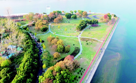 11月16日,市民在裕安區(qū)淠河國家濕地公園月亮島愜意休閑。初冬時節(jié),這里綠水澄澈,兩岸層林盡染,如畫景致吸引不少市民前來散心。